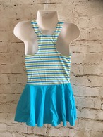 キッズ水着 110cm 女の子 子供 水着 ブルー グリーン ボーダー ワンピース 現品1点